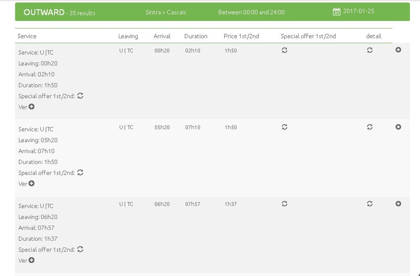 - от мыса Рока до Кашкайша – TB2 (3.25 евро);