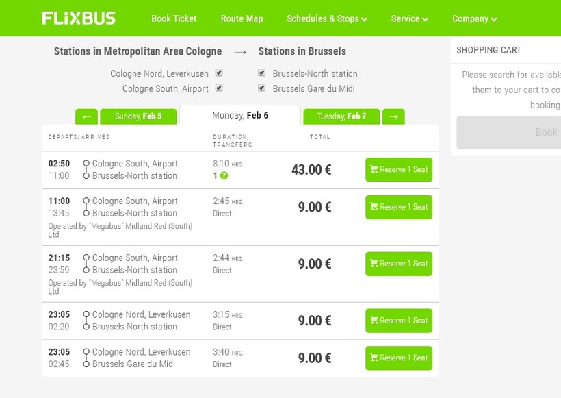 Билеты на автобус из Кёльна в Брюссель можно купить на Центральной автобусной станции в Кёльне в кассах или терминалах, или через интернет на сайте компании FlixBus. На электричку до Брюгге билет можно купить либо на вокзале в кассах и автоматах, либо так же через интернет на этом сайте.