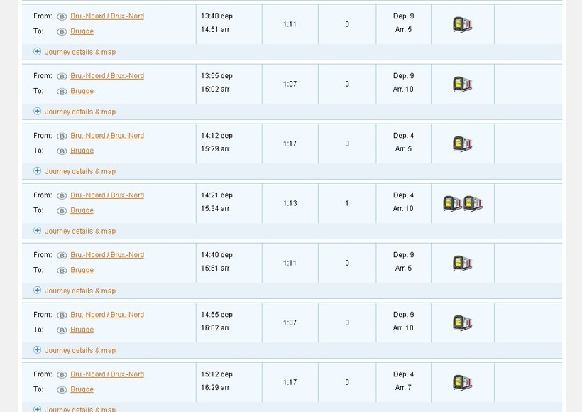 Далее из Брюсселя в Брюгге каждые 15 минут ходит пригородная электричка, в пути она находится 1 час 10 минут, отправляется с Bruxelles-Nord и прибывает на Station Brugge.