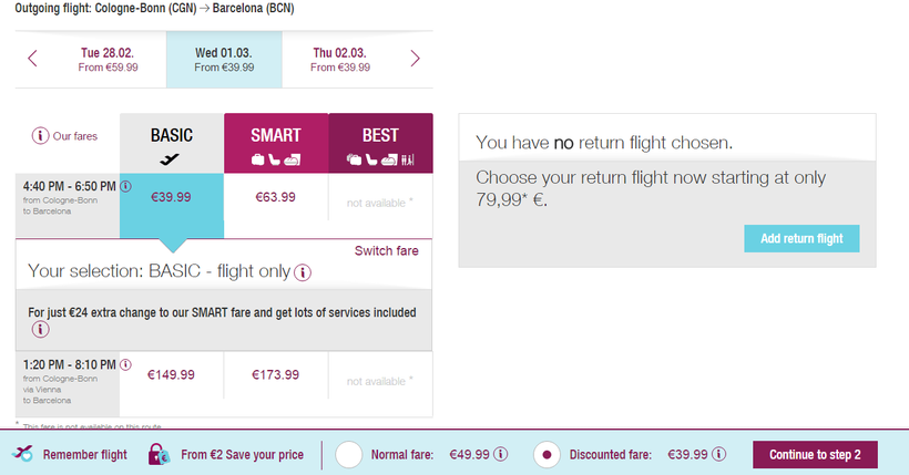 Обе компании предлагают три класса билетов. Самый простой тариф включает в себя только сам перелёт и провоз ручной клади, если у вас с собой есть багаж или вы хотите выбрать место в салоне, то придётся доплачивать, либо покупать билет более высокого ранга. Я покупал самый простой билет компании «Ryanair» за 22 евро. У «Germanwings» билеты подороже – от 39 евро.