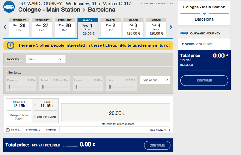 Есть и такой вариант, как доехать в Барселону на поезде, но я не буду описывать все подробности. Прямых поездов из Кёльна туда не ходит, так что придётся делать пересадку в Париже. Такой переезд занимает в самом благоприятном случае не меньше 12 часов, а стоить такая поездка будет в районе 150-200 евро. За эту цену можно до 10 раз слетать в Барселону самолётом, поэтому вариант с поездом, я думаю, отпадает.