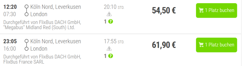 Есть два перевозчика, что помогут добраться в Лондон: Eurolines и FlixBus.