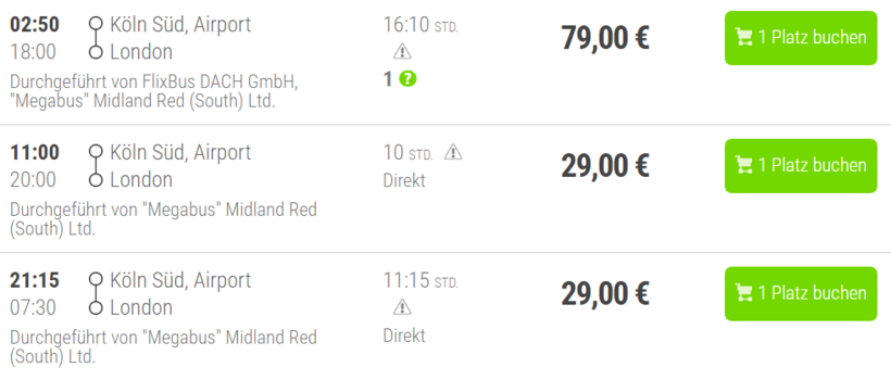 Автобусы фирмы FlixBus курсируют чаще, и отправляются от аэропорта и от Leverkusen Mitte.