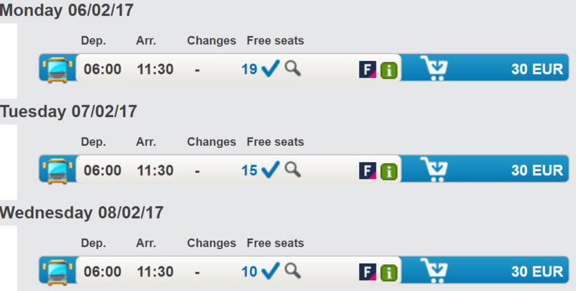 На поезд билет стоит от 59 до 100 евро. За автобус отдадите ещё 30 евро.