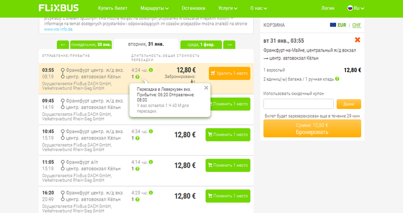 Поискав информацию в интернете, я нашла рейсы сразу двух транспортных компаний: FlixBus и Eurolines.