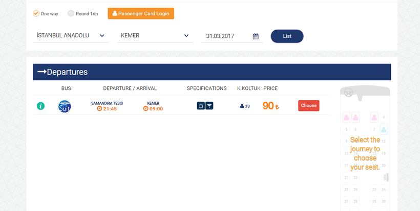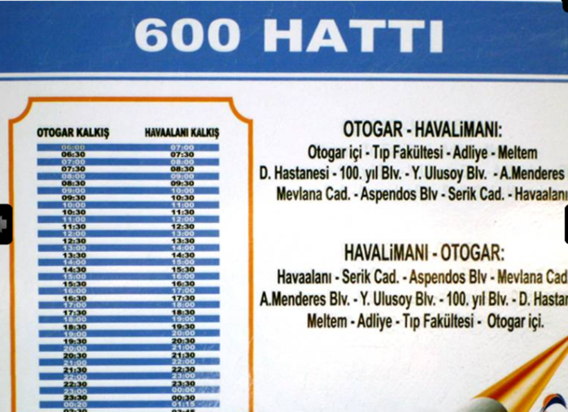 Автобус отправляется от автостанции, расположенной рядом со станцией метро Samandira Tesis, в 21:45, прибывая в Кемер ровно в 09:00.