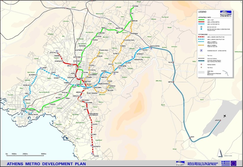 В аэропорту есть еще линия М3, которая тоже ведет в сторону Аттики. Да, нужно сделать пересадку, как и в предыдущем варианте. Я пишу об этом способе как о запасном по той причине, что здесь ходит метро в нужном нам направлении каждые 40 минут. Я считаю, что нет смысла ждать так долго, если можно уехать быстрее. Но все же турист должен знать и об этой ветке. Вдруг что-то случится, всякое бывает. Стоимость проезда 9 евро до станции Στ.Συνταγματοσ. Пишу не русскими (и даже не латинскими) буквами, так как на табло в метро будет указано именно так. До этой станции от аэропорта 14 остановок. Выходим из метро и здесь же пересаживаемся на ветку М2, поезда на которой ходят каждые 7 минут. За 2 евро доезжаем до Аттики. Эти 2 ветки были построены в 2000 году, как раз к Олимпиаде, которая здесь была в 2004 году.