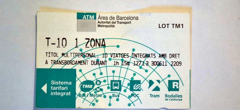Все также готовя почву для описания методов путешествия, не могу не рассказать о билете Т10. Это такая транспортная карта, с помощью которой вы имеете право 10 раз проехать на различных видах транспорта: метро, поездах FCG , поездах RENFE, трамваях и автобусах. Перевозки по этому билету осуществляются только в границе Зоны 1, к которой и относится центр Барселоны. Стоит такой билет примерно 10 евро. Приобрести билет можно на входе к ж/д станции RENFE в аэропорту, или же на любой станции метро. Однако, стоит помнить, что Т10 действует не на всех видах транспорта, которые едут до города.