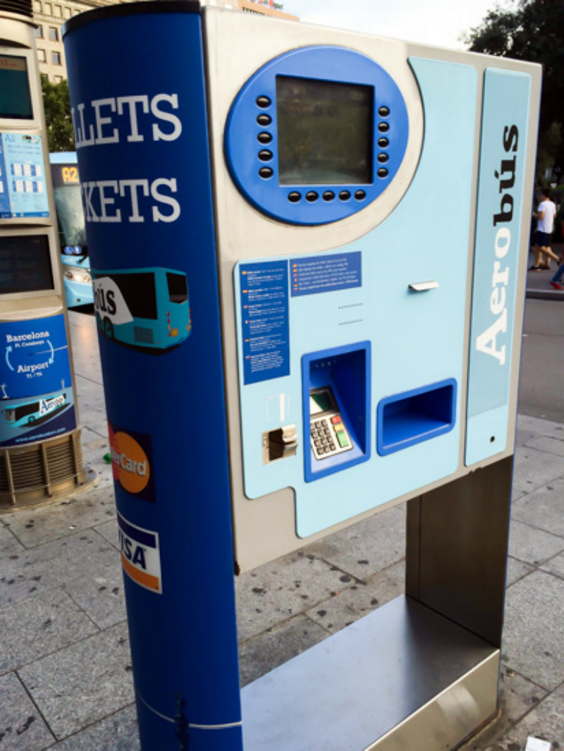 Отправляются шаттлы от Терминалов Т1 и Т2. Остановка шаттлов возле терминала Т1 находится как раз напротив входа в терминал. А остановка автобусов возле Терминала Т2, расположена около T2С и T2В. Ориентироваться можно на внешний вид автобусов и на вот такие терминалы по покупке билетов.