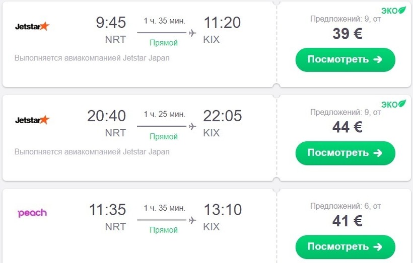 Стоимость проездных документов на самолет от 39 евро (4900 иен или 2900 рублей).