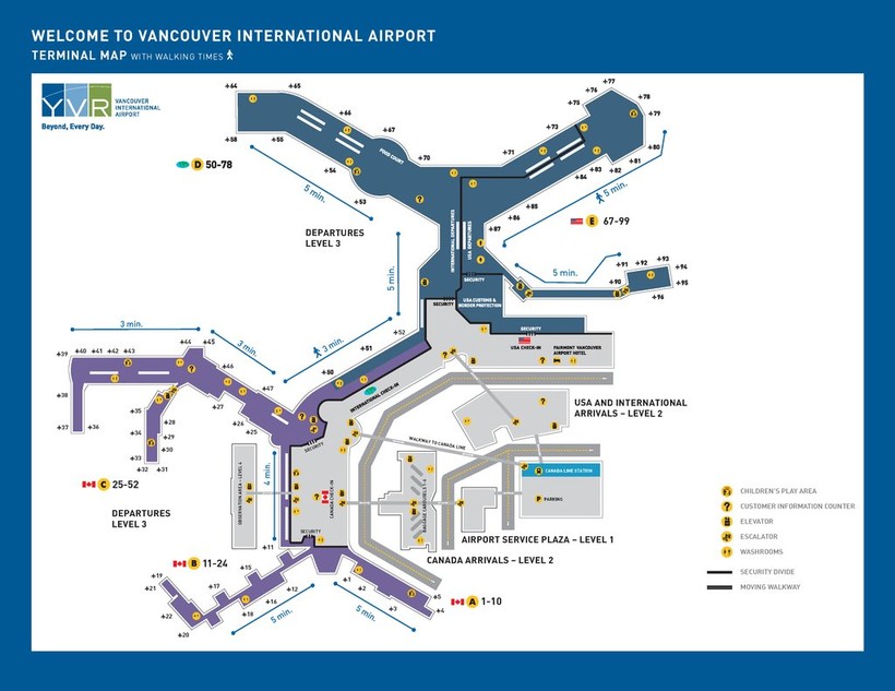 - Vancouver International - гигант среди аэропортов с тремя рабочими терминалами, более десятка известных брендовых магазинов, бесплатным wi-fi, собственными спа-салонами и даже отелем;