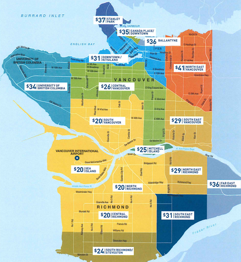 Стоимость такси в Ванкувере