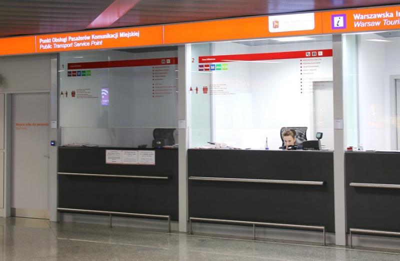 Я привожу расценки на начало осени 2016 года и, хотя цены в Польше уже много лет остаются практически неизменными, рекомендую перед поездкой в Варшаву проверить стоимость билетов на сайте http://www.ztm.waw.pl/?c=110&l=1. Купить билеты в польской столице можно прямо в аэропорту или же в пункте обслуживания пассажиров городской коммуникации, расположенном в терминале А в помещении 1.810/811 на первом этаже. Работает этот центр с 07:00 до 20:00 и выглядит вот так: