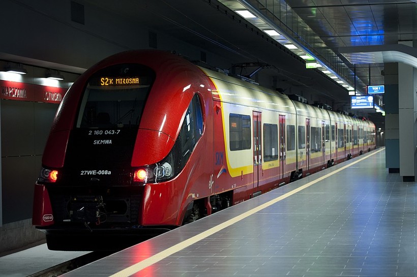 Со станции в сторону столицы отправляется несколько поездов (два принадлежащих Скоростной городской железной дороге и один, находящийся в собственности Мазовецкой ж.д.):