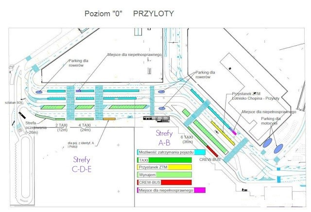 Обратите внимание, что автобусы 148, 175, 188 и ночной 32 отправляются в сторону города с нижней плиты (płyta dolna) терминала, расположенной возле залов прилетов, забирают сначала пассажиров с секторов CDE, а потом AB. Линия 148 подойдет тем, кто захочет уехать с остановки Автобусный Терминал (Terminal Autobusowy), которая раньше она называлась Этюда. Не пытайтесь сесть в автобус на верхнем уровне терминала (при зале отлетов). Там разрешена только высадка пассажиров и вас могут обязать выплатить штраф за нарушение правил.