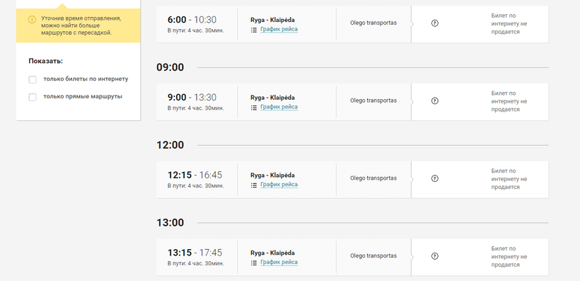 К сожалению, купить билет через интернет можно только на рейс, отправляющийся в 15:00. По этой причине идти за покупкой придется в кассу автовокзала Риги.
