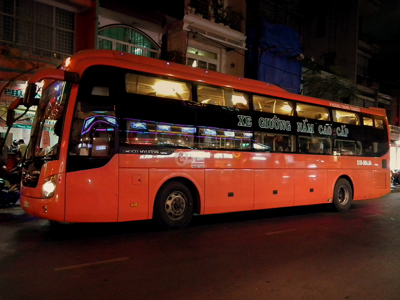 Автобусная остановка находится прямо возле аэропорта, остановку вы заметите сразу, потому что там всегда большое скопление людей. На фото вы видите, что автобус не такой уж большой, поэтому очередь к нему всегда выстраивается внушительная. Едет до центра Хошимина автобус где-то 40 минут. Первый автобус отправляется в 06:00, а последний в 18:00, а курсирует он с интервалов в 30 минут. Чтобы не пропустить свою остановку, можете сказать водителю, что вам надо сойти на «Mien Dong».Прибыв на автовокзал, начнется самое интересное – автобусы отправляются редко, ведь ехать, если вы помните, 7 часов. Лучше всего, если вы возьмете билет на ночной автобус «Sleeper Bus». На фото, которое я прикреплю, вы можете увидеть, что это довольно-таки большой ночной автобус. Внутри хоть и тесновато, но вполне можно поспать, пока водитель будет внимательно ехать по серпантину. Я брала именно на ночной, но знаете, если честно, для меня не было бы разницы, если бы я поехала на дневном, потому что дорога была просто ужасная, спать было невозможно из-за постоянной тряски. Автобус отправляется только один раз − ночью, в 23:30. Порой дорога занимает вместо 7 часов, все 9.