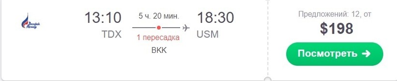 Билеты от 198 долларов (от 6270 батов или 12730 рублей).