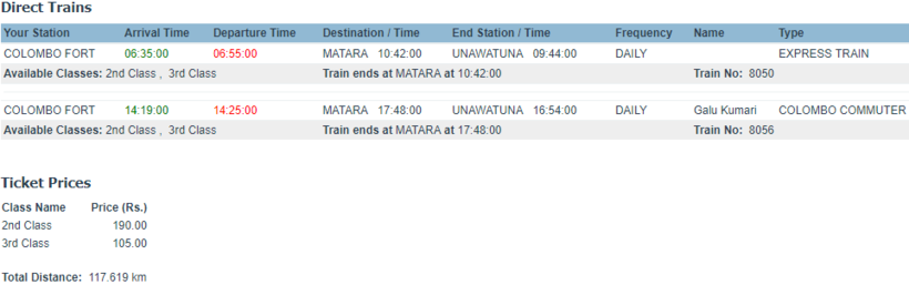 Расписание поездов уточнить заранее советую на сайте «Железные дороги Шри-Ланки», а вот билеты купить можно только в кассах ж/д вокзала Коломбо.