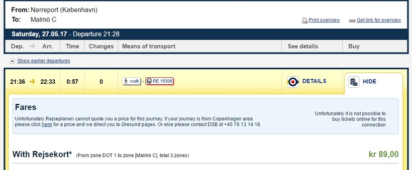 Билет на поезд обойдется в 89 датских крон (12 евро).
