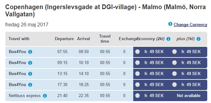 Купить билеты можно на официальных сайтах компаний, обслуживающих маршрут, - NettBuss, Swebus или в кассе автостанции Копенгагена.