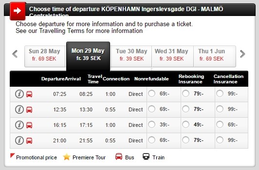 Ниже приведена информация о том, сколько часов вам потребуется, чтобы добраться от Копенгагена до Мальмё, а также приведена примерная стоимость проезда (средняя цена билета) на том или ином виде транспорта.