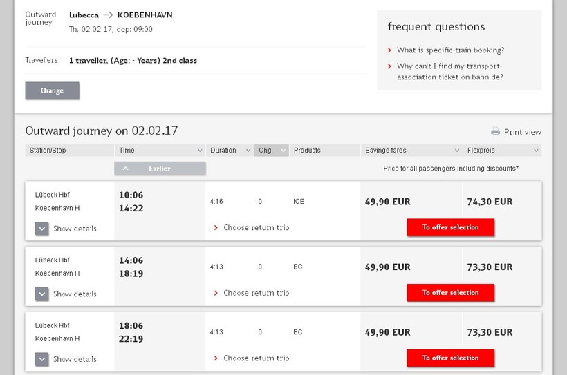 Ниже приведена информация о том, сколько часов вам потребуется, чтобы добраться от Любека до Копенгагена, а также приведена примерная стоимость проезда (средняя цена билета) на том или ином виде транспорта.