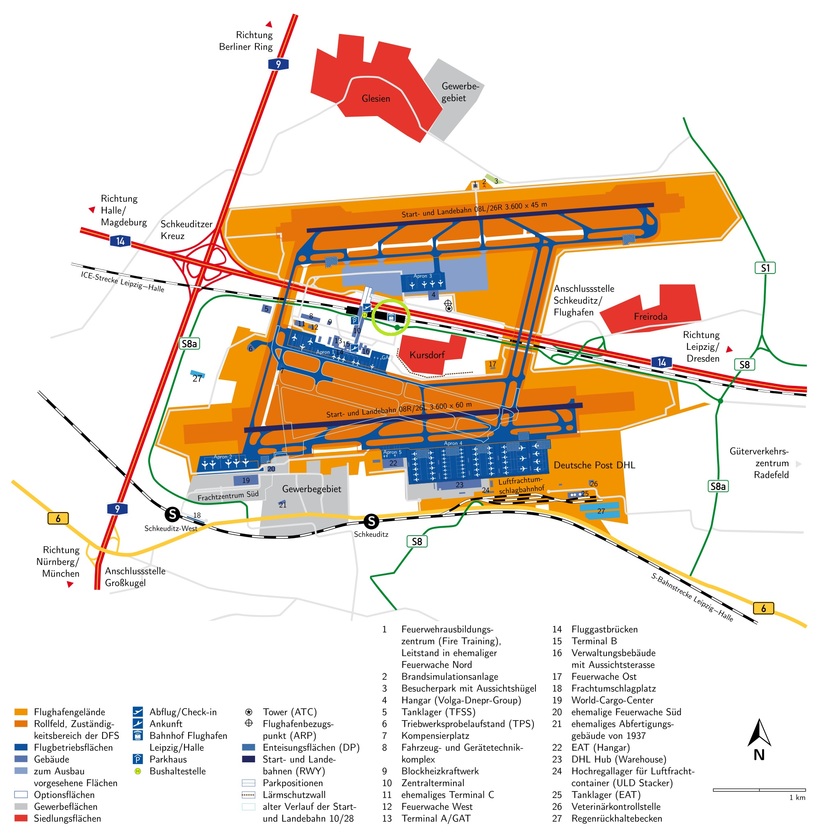 Расположение вокзала при аэропорте Халле/Лейпциг (выделено кружочком)