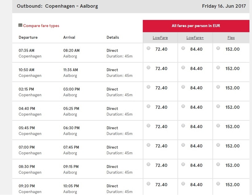 Доехать без пересадки у меня не получилось, прямых рейсов и вовсе не существует, как минимум придется сделать пересадку в Фредериксхавне.