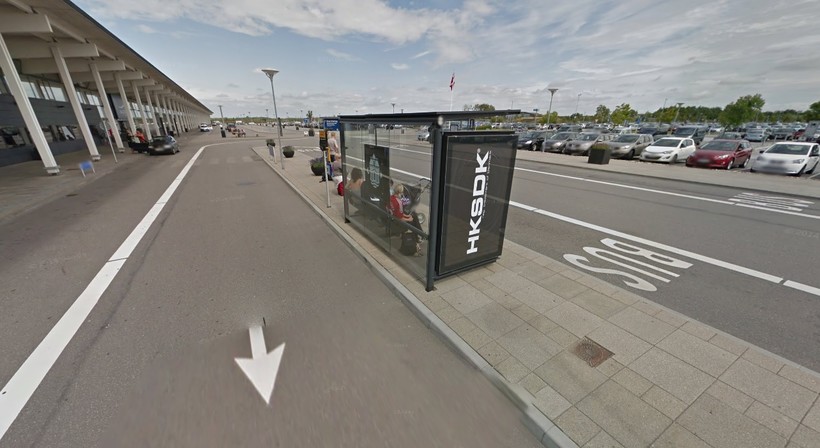 Перелет занимает 45 минут, но на этом путешествие не заканчивается, даже можно сказать только начинается, сколько там того перелета? Теперь предстоит доехать в Скаген с несколькими пересадками. Выйдя из аэропорта, далеко не уходите, прямо возле него есть автобусная остановка «Aalborg Lufthavn», что в переводе значит «Ольборг аэропорт», вот она: