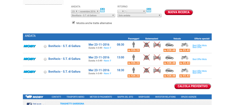 Вообще расписание часто меняется, а компаний, занимающихся рейсами очень много (La Meridionale, Corsica-ferries и Sardinia-ferries, Moby, Traghetti lines, Grimaldi-ferries, Tirrenia).