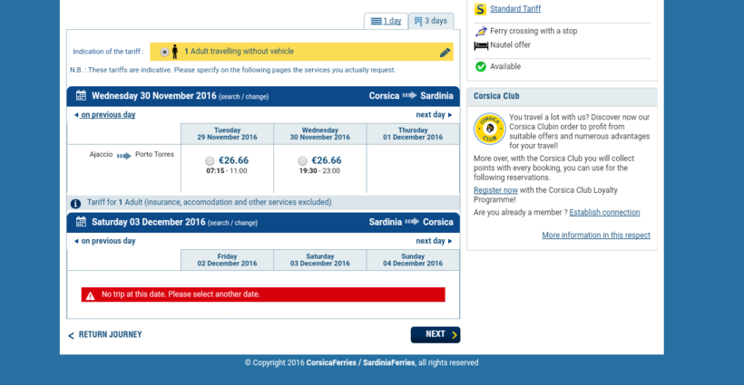 - из Аяччо (Ajaccio) в Порто-Торрес (Porto Torres).
