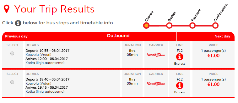 Купить можно на сайтах перевозчиков OnniBus, Paunu, Savonlinja. Рассчитаться за проезд можно с водителем.