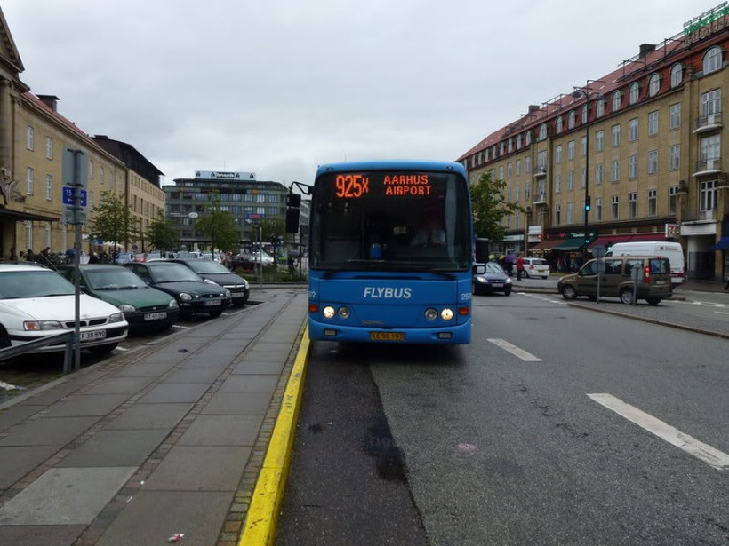 Дорога по времени от аэропорта до центра Орхуса занимает около 45 минут. Ходит автобус каждые 35 минут, начиная с 07:00 до 21:00. Автобус будет делать по дороге остановки, но конечная остановка будет прямо в центре города и называется она «Banegardsladsen», на ней вам и надо сойти. На фото ниже видно, где остановится автобус.