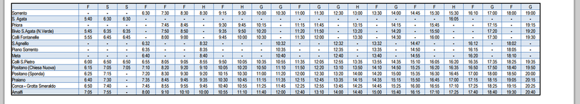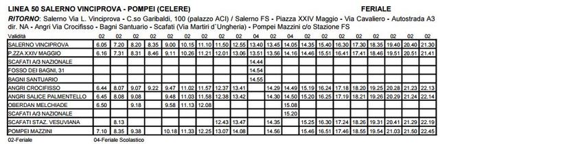 Искать нужно автобус носящий номер 50. С его расписанием можно ознакомиться либо на сайте компании-перевозчика либо на скриншоте ниже: Выйдя на нужно остановке, и зайдя на причал, расположенный по адресу Piazza Della Concordia, 84122 Salerno SA, можно воспользоваться услугами компании Travelmar.