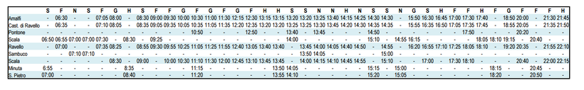 До Равелло ходит автобус этой же фирмы-перевозчика, номер у него также может быть 5120. Важно обращать внимание на маршрут поездки. Расписание автобуса можно посмотреть по ссылке приведенной мной выше, либо внизу: