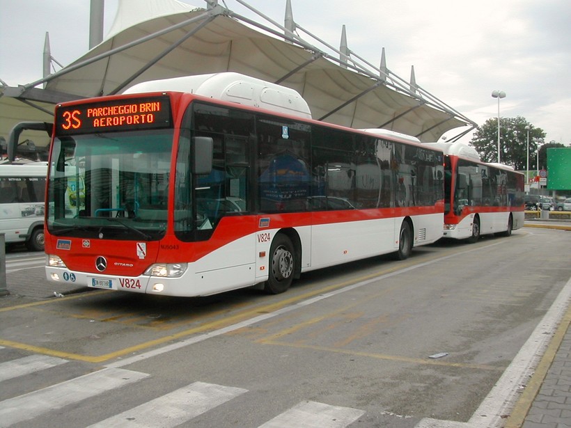 Можно часть пути проделать и по морю. Но чтобы добраться до причала, сначала нужно сесть на автобус компании CSTP. Посадка производится на остановке, указанной выше. Выходить же нужно на остановке XXIV Maggio. Автобусы компании имеют примерно такой вид: