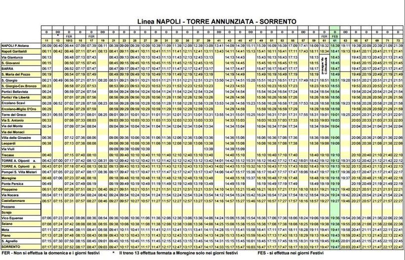 На самой станции нужно следовать указателям, и тогда не будет труда попасть на нужную платформу. С расписанием данной линии Чиркумвезувианы можно свериться на скриншоте ниже: