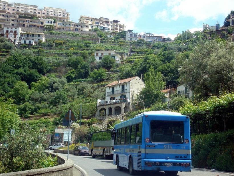 Теперь в Сорренто нужно будет сесть на следующий автобус, который едет до Амальфи. Обслуживаются данные рейсы транспортной компанией под названием SitaSud. Обычно их автобусы светло-синего цвета:
