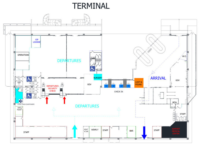 Этот аэропорт поменьше чем аэропорт Каподичино, поскольку является внутриитальянским. Терминал здесь всего один, вот его план-схема: