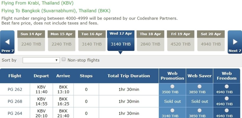 Из Краби в Бангкок летают самолеты многих авиакомпаний, в частности Bangkok Air.