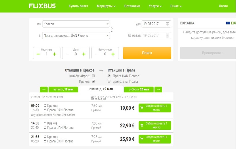 Приобрести билеты с пересадкой в Праге можно через интернет, они продаются на сайтах Flixbus, Eurolines, Polskibus и Regiojet.
