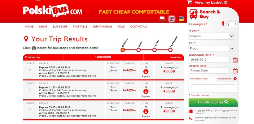 - Польский сайт железной дороги абсолютно бестолковый, особенно для поездок за пределы страны, здесь можно только найти поезд в Прагу и не более