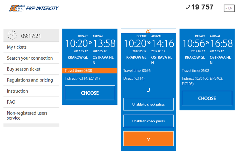 Поезда в Остраву отправляются дважды в день с вокзала Краков-Главный. В 10:20 отходит поезд TLK, он приезжает в Остраву в 14:20. Поезд TLK – это самый простой тип польских поездов. Есть два класса билетов, в вагоне работает вайфай и можно зарядить телефон. Буфета нет, но иногда по вагону провозят тележку со всякими вкусностями. Мы ездили на таком поезде из Варшавы в Лодзь – вполне приличный паровоз.