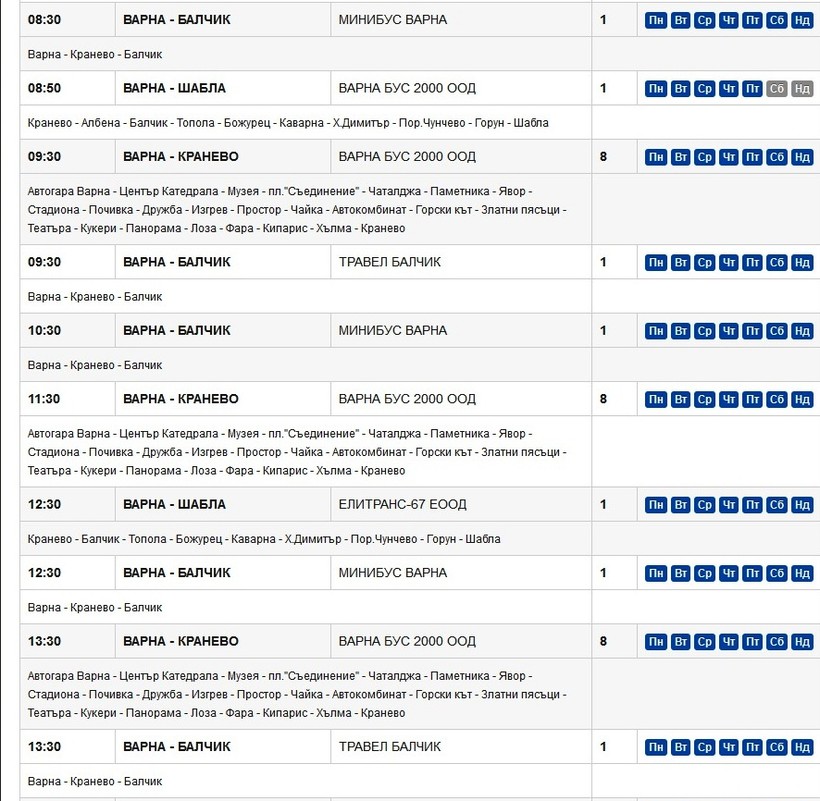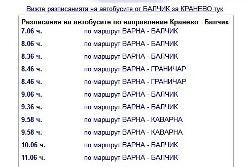 Здесь видно рейсы, следующие и через Кранево, и через Балчик