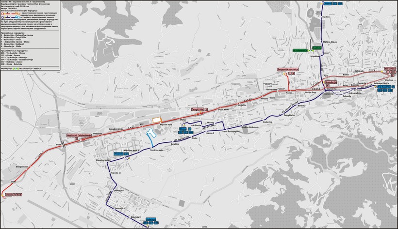 Маршрутных такси в их классическом виде в Сараево нет. Зато некоторые отели предоставляют услуги трансферов, причем данную услугу совсем не обязательно заказывать заранее. Скорее всего будет предложено стать пассажиром небольшого микроавтобуса, рассчитанного на 7-10 человек, который отправится либо когда заполнит весь салон, либо полностью заберет всю группу. О возможности трансфера стоит узнавать в своем отеле.