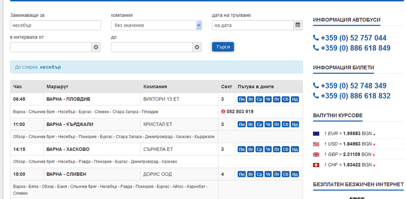 Так как расписание периодически меняется, то советую зайти на сайт автовокзала и посмотреть актуальную информацию. Сам портал представлен на болгарском языке, но понять, что к чему, поверьте, будет несложно.