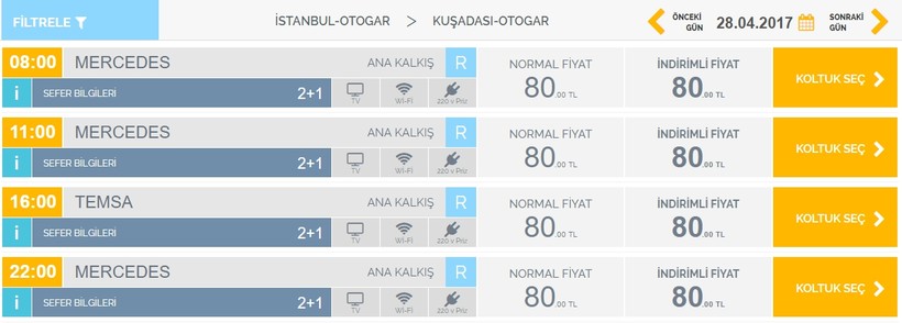 Ниже приведена информация о том, сколько часов вам потребуется, чтобы добраться от Стамбула до Кушадасов, а также приведена примерная стоимость проезда (средняя цена билета) на том или ином виде транспорта.