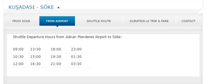 Сразу возле аэропорта Измира находятся автобусные остановки. Оттуда отправляются шаттлы Havas в Кушадасы. На сайте этой компании я и нашла расписание отправок.