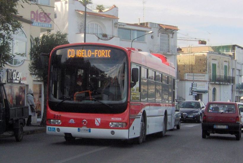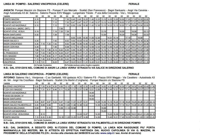 Прямых рейсов из Салерно в Сорренто нет, придется ехать рейсами двумя разных компаний. Сначала нужно будет ехать до Помпей автобусом № 50 компании CSTP, который выглядит вот так: